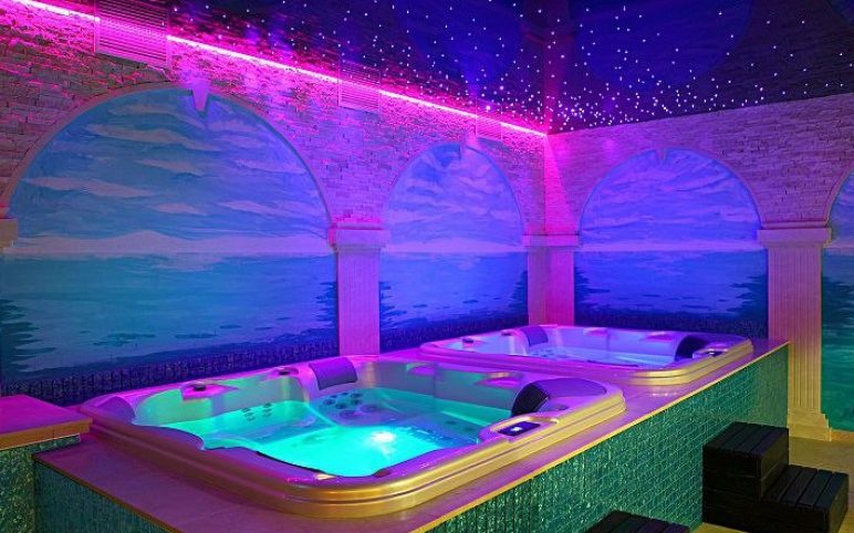 hydromasażem w strefie koloroterapii, komnata ze ścianą tężniowo-solną.