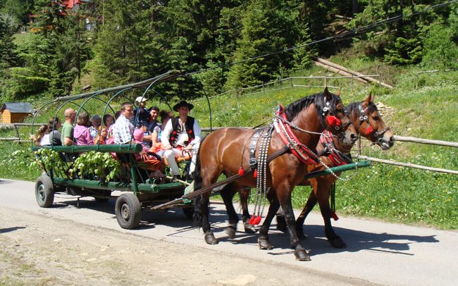 Godz. 13.30 wyjazd do Wisły Czarne na zielony kulig. Po kuligu regionalne przekąski  z pieczoną kiełbaską, chlebkiem ze smalcem, ogórkiem kiszonym i herbatką regionalną oraz gorące danie obiadowe.